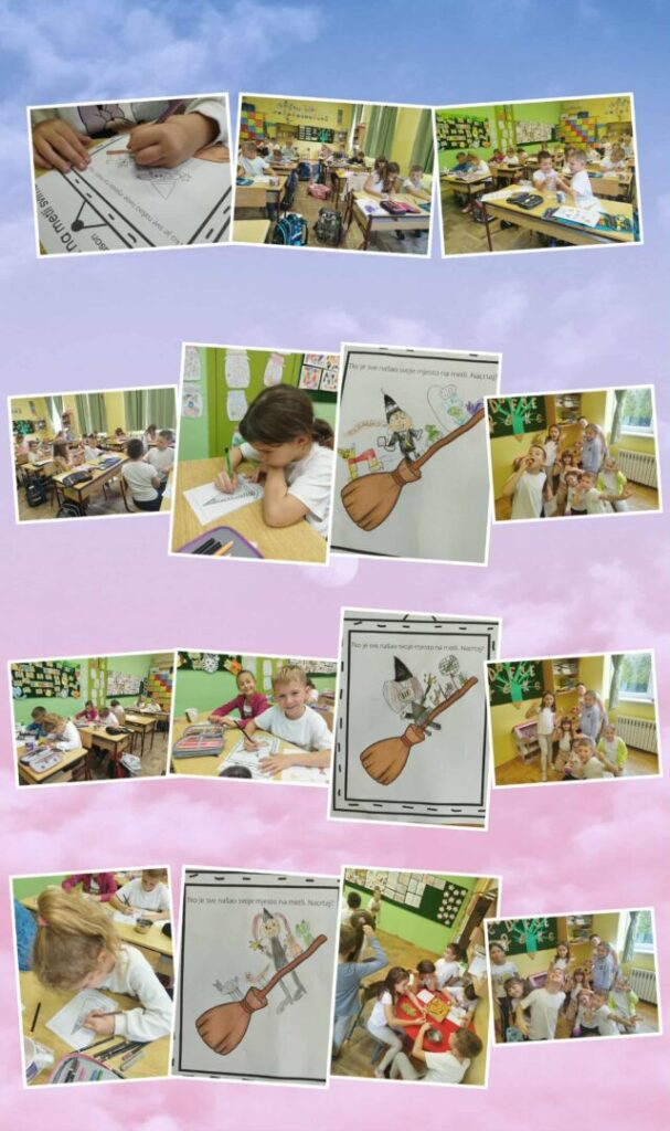 Prva priča s kojom smo započeli ovaj projekt je Mjesta ima na metli svima. To je jedna neobična priča o neobičnom pomaganju i prijateljstvu između vještice i životinja. Iz priče smo naučili kako uvijek treba pomoći u nevolji.