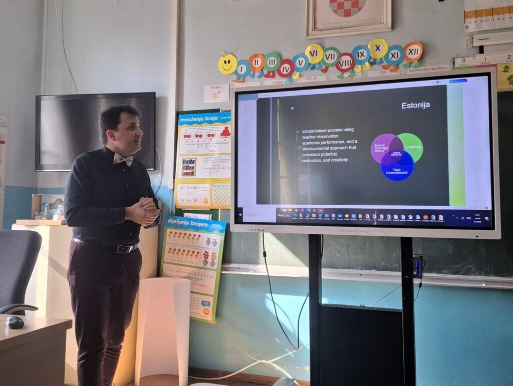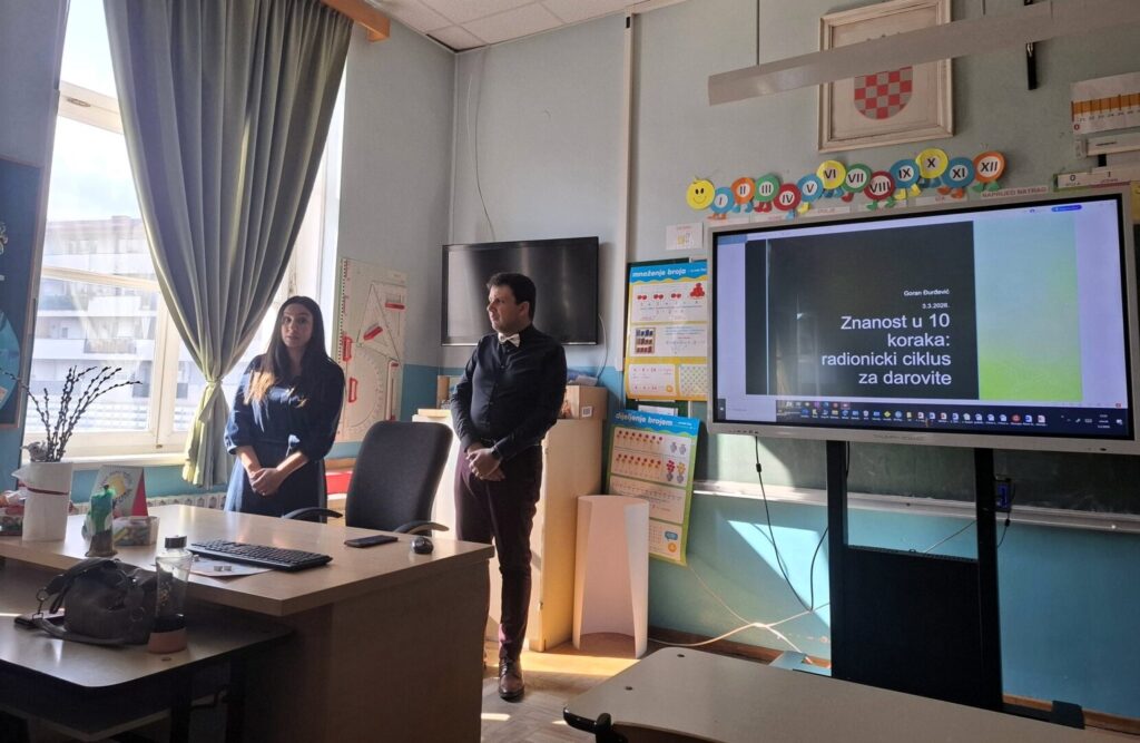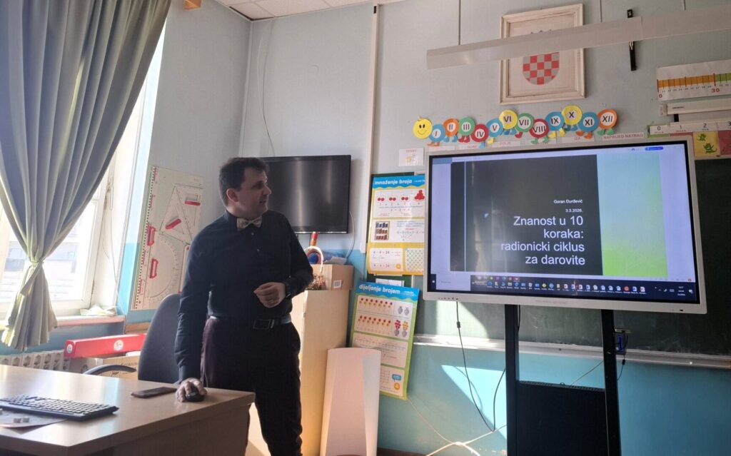 Danas je na sjednici Učiteljskog vijeća održano iznimno zanimljivo predavanje za učitelje, koje je vodio dr. sc. Goran Đurđević. Tom je prilikom predstavio projekt „Znanost u 10 koraka“, usmjeren na provedbu radionica za darovitu djecu.