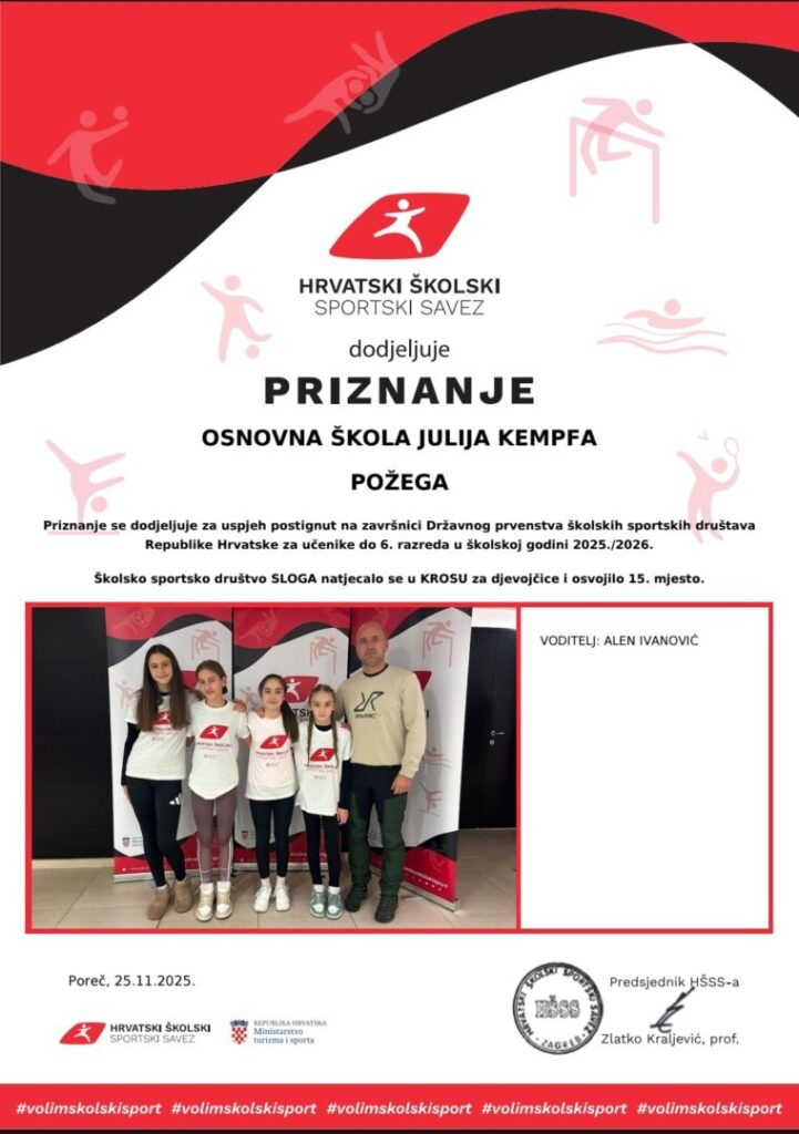 Danas 25.11.2025.održano je Državno natjecanje u KROSU ŠSD-a Republike Hrvatske u Poreču.