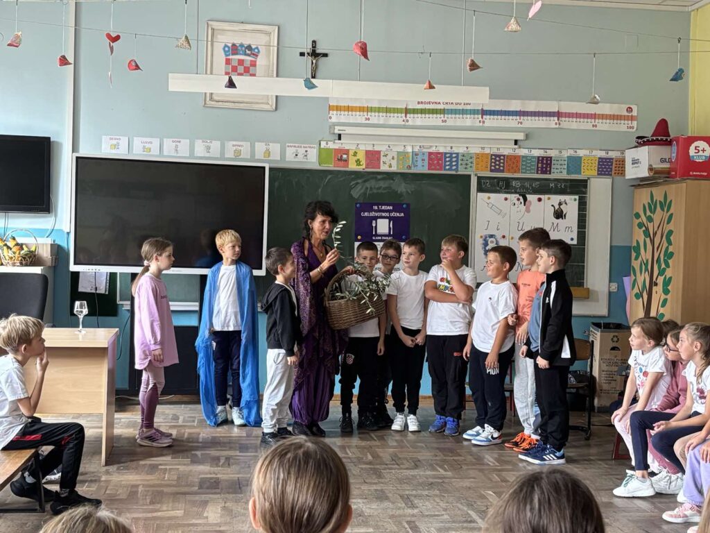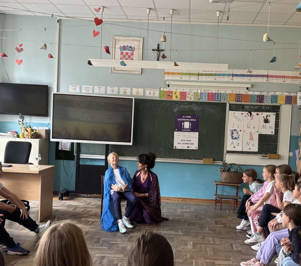 Danas je , povodom Tjedna cjeloživotnog učenja, u organizaciji PUO Obris, organiziran susret pripovjedačice Margarete Peršić s učenicima 3.a i 3.b razreda. Po drugi put, ova se vrsna pripovjedačica predstavila učenicima naše škole i na čaroban način ih uvukla u bajkoviti svijet.