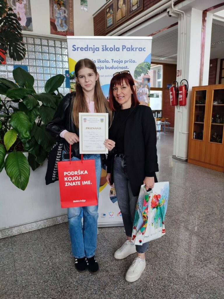 U Pakracu se 23. ožujka održalo Županijsko natjecanje iz hrvatskoga jezika na kojemu su sudjelovale dvije ljubiteljice našega jezika – sedmašica Mia Rezo koju je pripremala nastavnica Nina Horvat-Starčević te osmašica Ines Matković koju je pripremala nastavnica Maja Hula. Voljeti svoj jezik znači imati identitet, učiti ga znači ulagati u baštinu! Mia je pokazala kako ga se treba voljeti i učiti osvojivši prvo mjesto u kategoriji sedmih razreda! Čestitamo Miji, Ines i nastavnicama Nini i Maji što su ovako lijepo predstavile našu školu!
