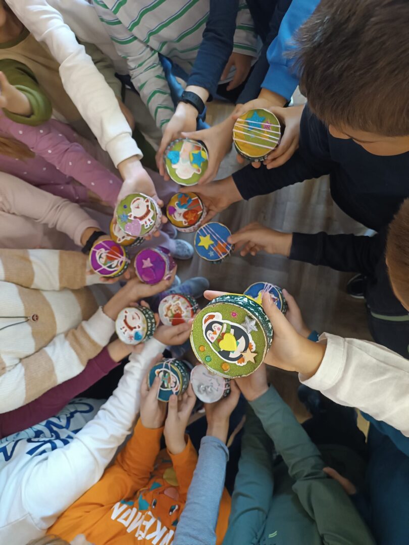Suradnja 1.2.3.4. PO i 2. c razreda i njihovih učiteljica u sklopu projekta Prilika za sve. Učenici su uz podršku učiteljice Krunoslave i pomoćnica u nastavi izrađivali božićni bonjo – ukras za bor na kojemu možemo i zasvirati 🙂
