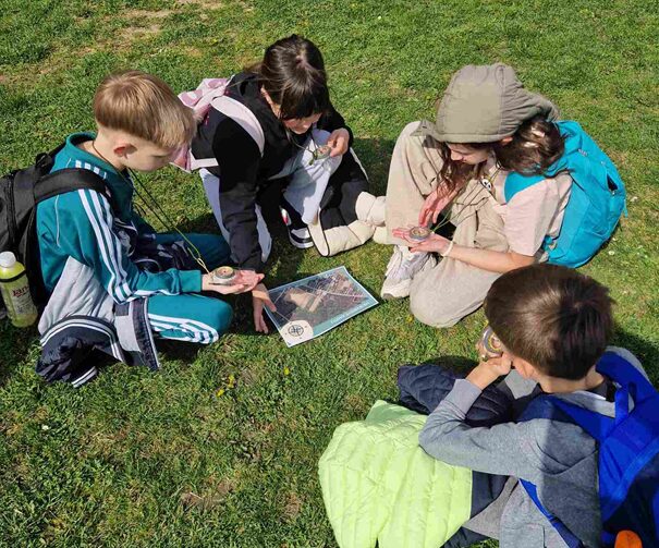 Nakon kratkog odmora slijedile su druge aktivnosti- izrada sunčanog sata, orijentacija pomoću znakova u prirodi(mahovina, godovi, Sunce), izrada vodenog kompasa i na kraju smirujuća aktivnost osluškivanja zvukova oko sebe i ucrtavanja doživljenih zvukova u „metu“. Svaki učenik se osamio, zažmirio i usmjerio pozornost na zvukove oko sebe. Ono što su čuli trebali su ucrtati u metu, ali pazeći na strane svijeta s kojih su čuli zvukove.