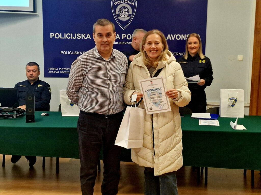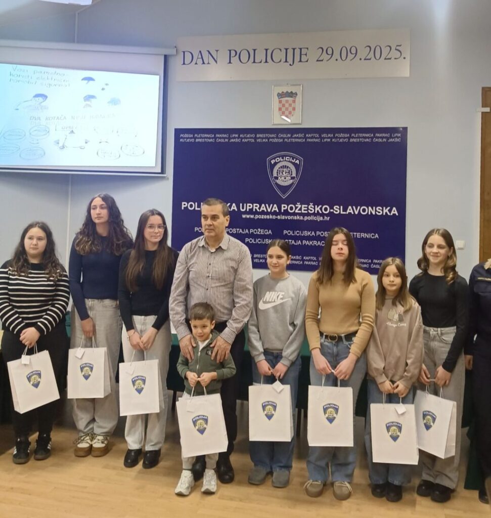 U utorak, 20.01.2026., u policijskoj postaji upriličena je dodjela nagrada učenicima koji su sudjelovali u projektu PU Požeško-slavonske u izradi promotivnih letaka za projekt: Sigurno sudjelovanje u prometu.